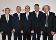 Düsseldorf/Dresden, 2. Mai 2012. Mit dem Vodafone Innovationspreis und zwei Förderpreisen zeichnet die Vodafone-Stiftung für Forschung in der Mobilkommunikation heute Abend im Albertinum in Dresden bahnbrechende Wissenschaft aus. Die Preisträger erlauben mit ihrer Arbeit bereits heute einen Blick auf den Mobilfunk von morgen. Dann werden Handys parallel zum Internet ein eigenes Kommunikationsnetzwerk aufbauen, Mobilfunkantennen dank Glaskeramik leistungsfähiger und Erfahrungen aus 6000 Jahren Kartennutzung ganz selbstverständlich online verfügbar und integrierbar sein.